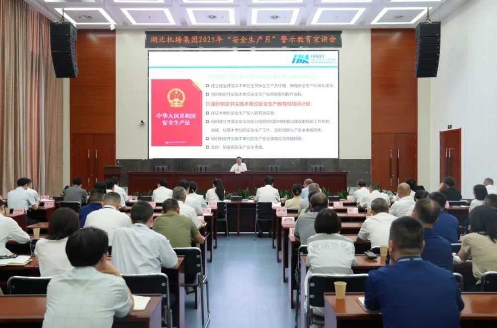 6月6日,湖北機場集團召開2025年“安全生產月”警示教育宣講會,機場集團黨委副書記、總經理江濤出席會議并作宣講培訓,武漢機場公司總經理左小平出席會議,機場集團總經理助理孟立華主持會議。會議集中觀看了第24個全國“安全生產月”主題宣傳片。