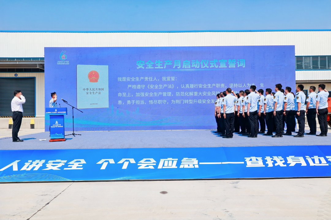 6月5日下午,荊門市安委辦、市應急管理局在荊門市應急物資儲備庫舉辦2025年全市安全生產月啟動儀式暨應急裝備列裝展示活動。市政府副秘書長劉怡軍主持活動并講話。啟動儀式現(xiàn)場,158名活動代表,舉起右手莊嚴安全宣誓,高聲承諾“堅持以人為本、生命至上,為荊門轉型升級安全發(fā)展不懈奮斗”,響亮的誓言將啟動儀式氛圍推向高潮。