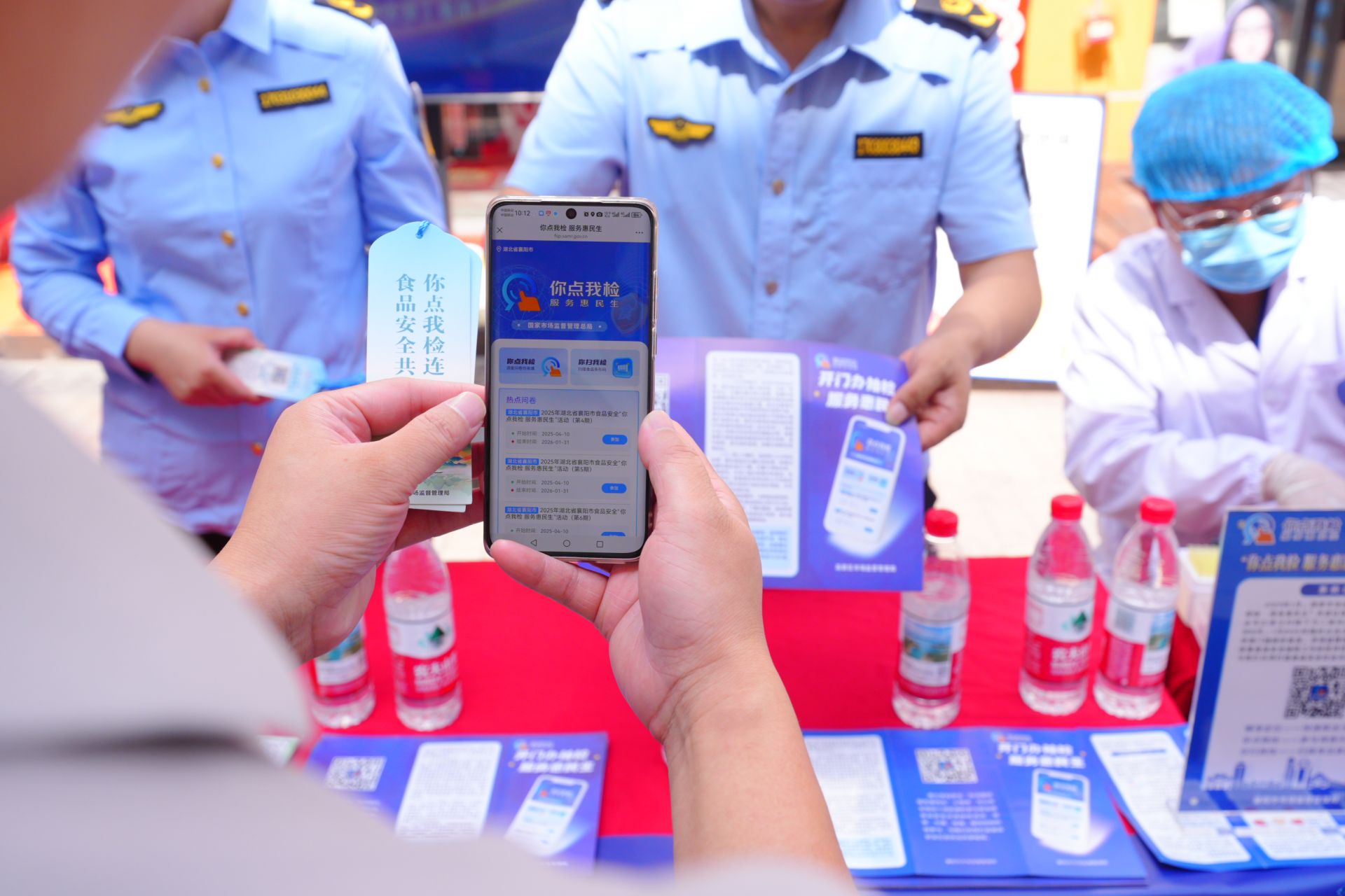 “您看,掃這個二維碼就能參與‘你點我檢’問卷調(diào)查了,不需要收集您的任何個人信息,只要您選出最想抽檢的食品品種和食品經(jīng)營場所,咱們后臺就能看見您的意見了?!惫ぷ魅藛T小劉耐心地向過往市民介紹。