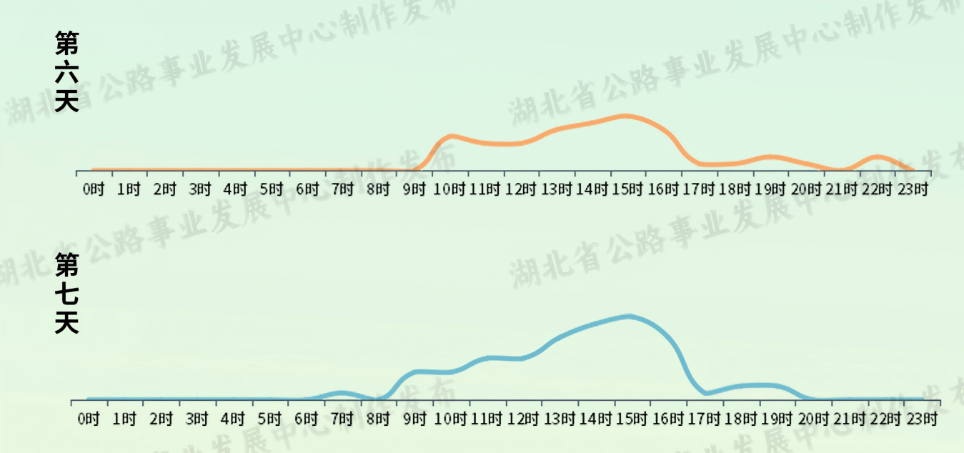 流量集中的高速公路收費(fèi)站主要有S15漢蔡高速琴臺(tái)站,S1岱黃高速府河站,S7武鄂高速龔家?guī)X站,G4京港澳高速蔡甸站,S17硚孝高速?gòu)胶诱?,S58三峽高速宜昌站,G55二廣高速襄陽(yáng)西站、荊州中站,G70福銀高速十堰東站,S17硚孝高速毛陳站。