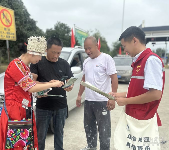 作為“瑤族發(fā)源地”的省界窗口,這里的服務(wù)滿是瑤鄉(xiāng)風(fēng)情?!艾庎l(xiāng)雋妞”們身著紅馬甲,遇本地老鄉(xiāng)用方言嘮家常,提醒“前面路口減速”。碰上外地游客,就用普通話介紹美景美食。電子指引里還加了特產(chǎn)介紹,不少司乘被吸引,專程去逛古瑤村、買特產(chǎn)。志愿服務(wù)從“幫個(gè)忙”變成了推介瑤鄉(xiāng)文化的“活名片”。
