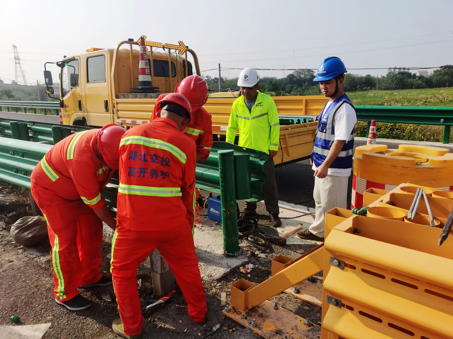 圖:孝漢應高速孝感北互通漢孝向安裝防撞墊及護欄板