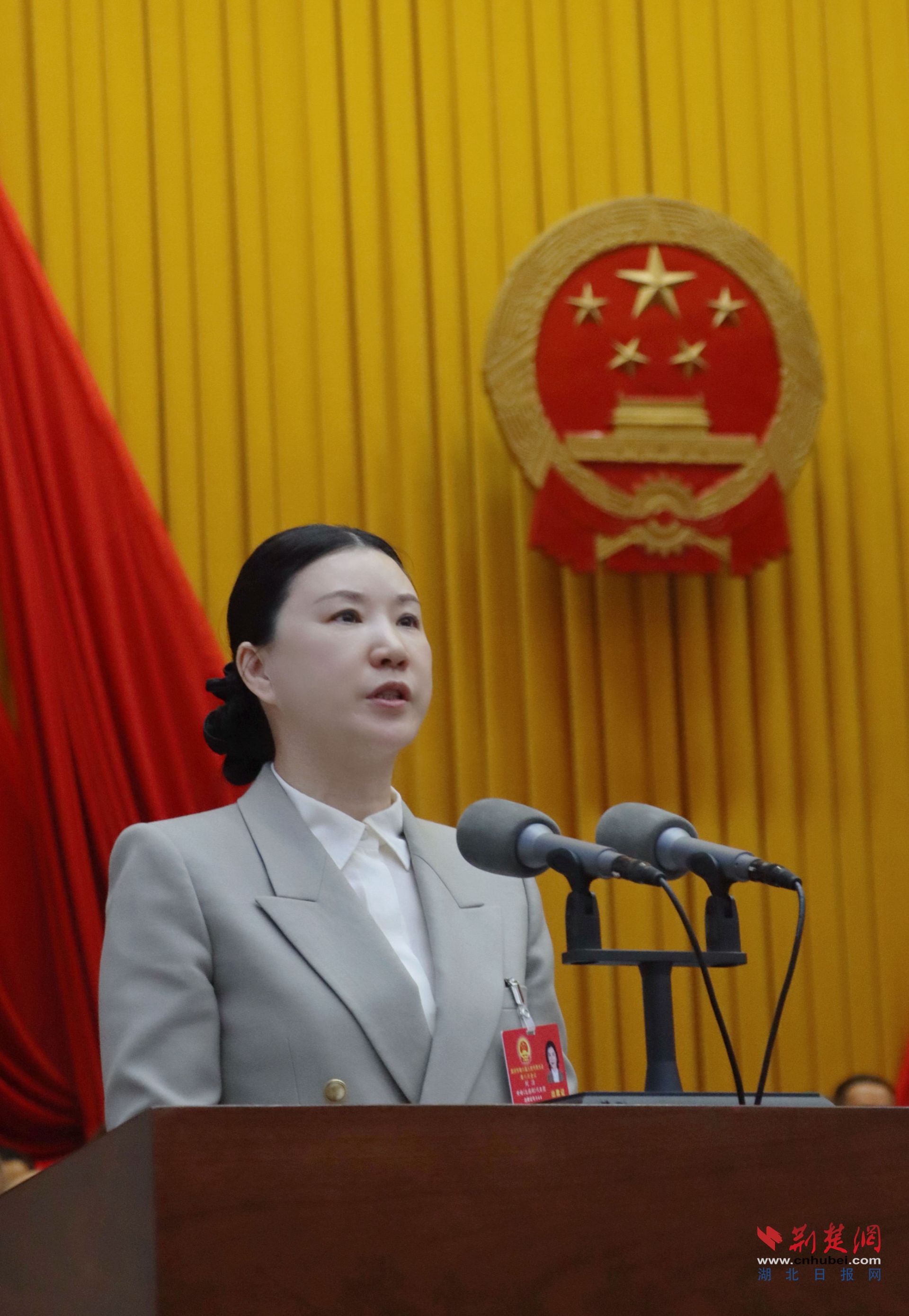 1月13日,黃岡市第六屆人民代表大會第六次會議在黃岡職工活動中心開幕。市長劉潔代表市人民政府向大會報告工作。